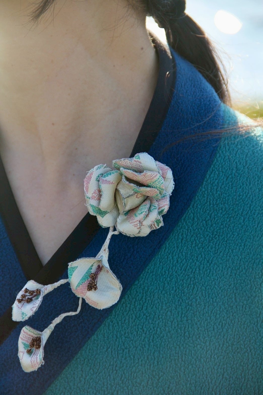 今回ご紹介するのは、博多織のコサージュ作品。旅のご縁から生まれた唯一無二の一点物です。