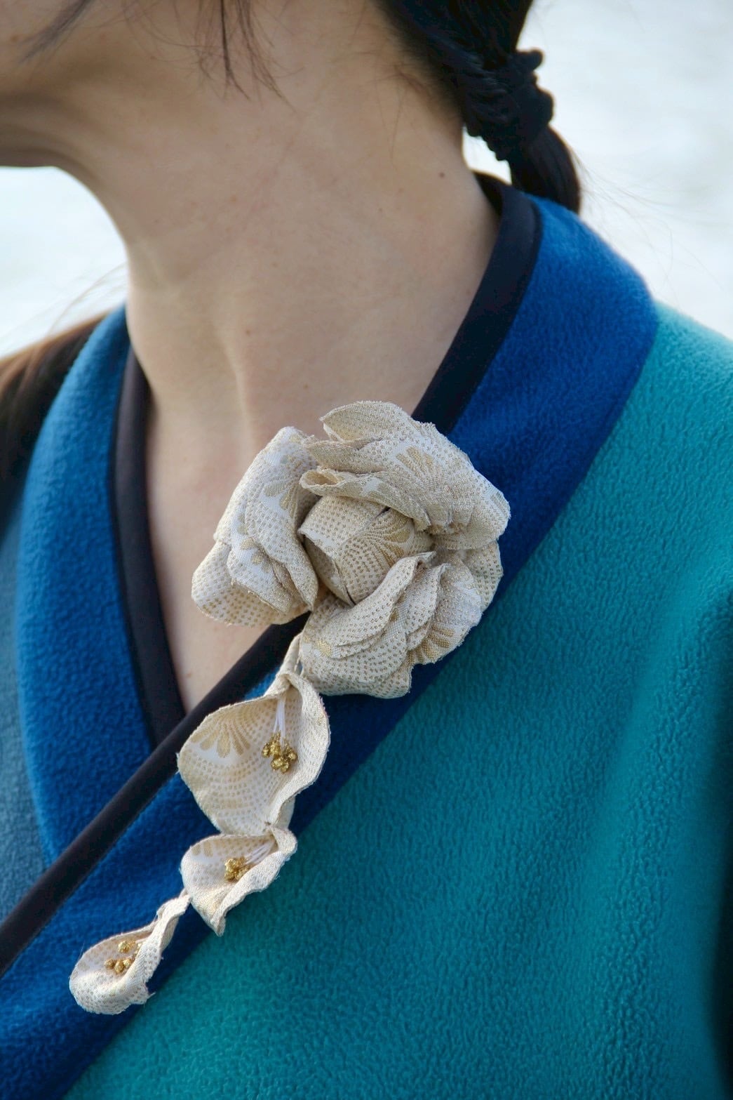 今回ご紹介するのは、博多織のコサージュ作品。旅のご縁から生まれた唯一無二の一点物です。