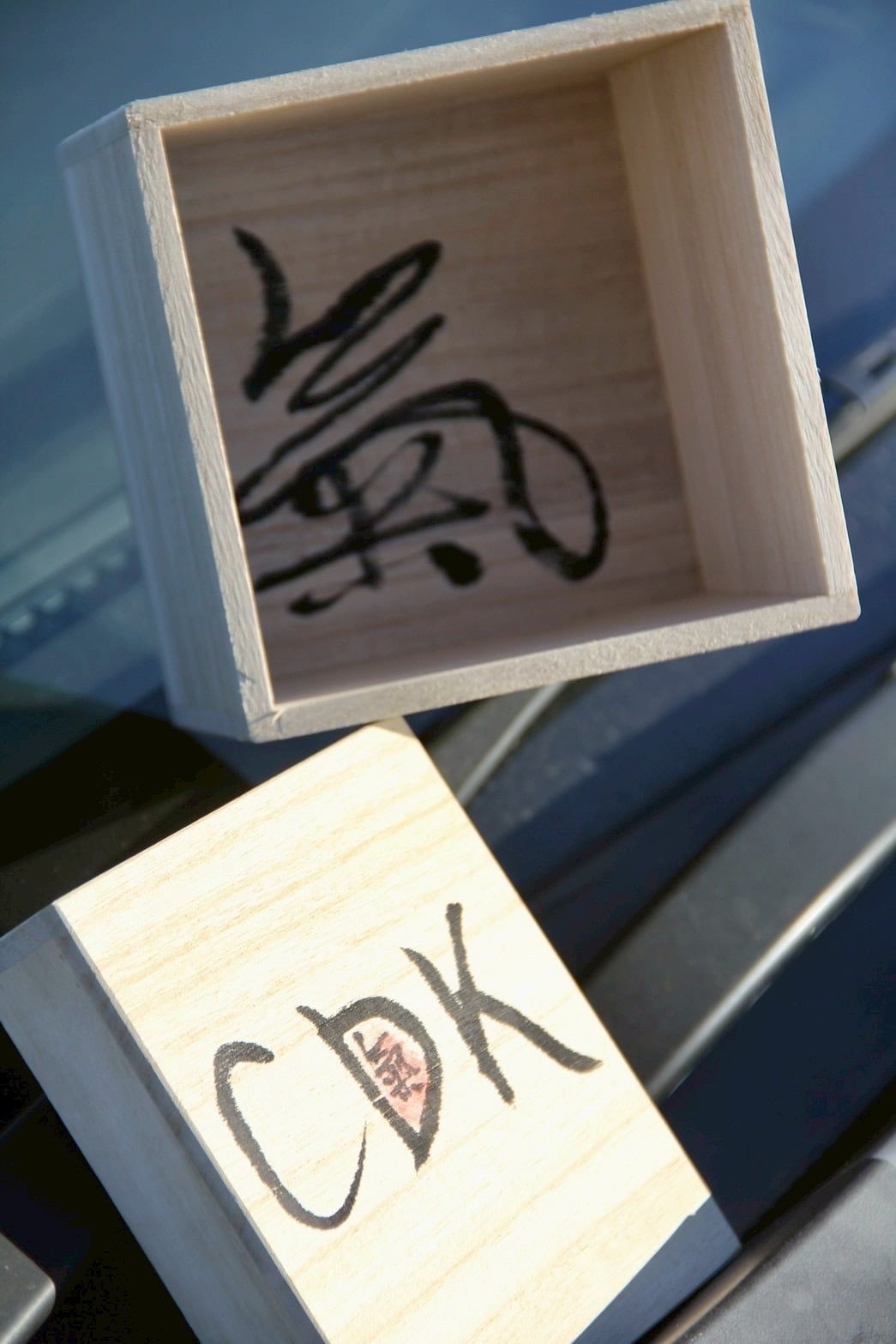 特製の木製箱に、J氣の代表書作品「氣」を同梱。